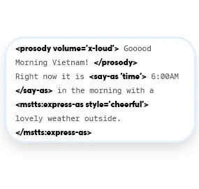 Customize the speech flow, pauses, emphasis, and tone using powerful SSML tags for more natural and expressive voiceovers.